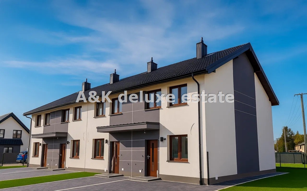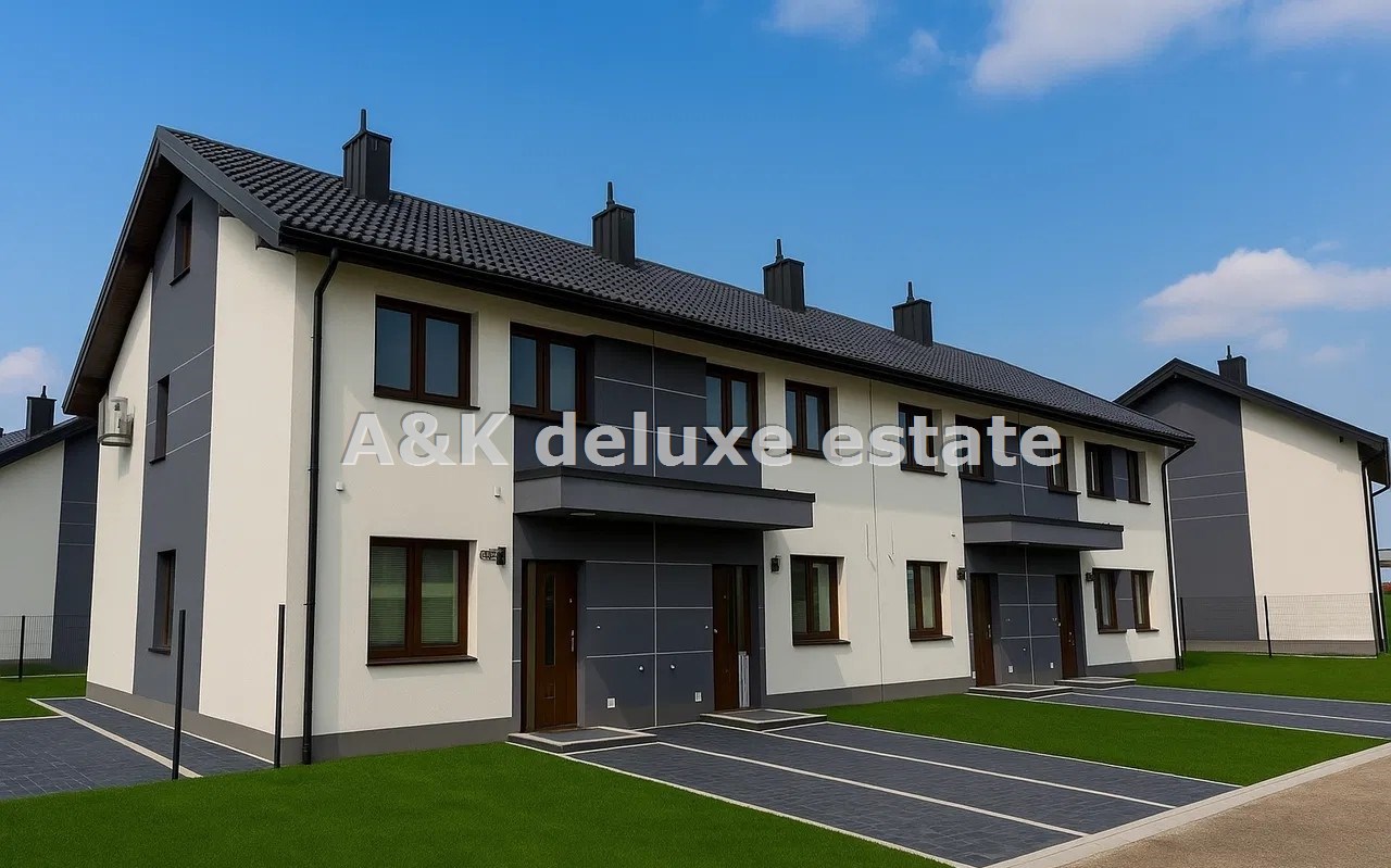 Domy w zabudowie szeregowej w stanie deweloperskim z dwoma przynależnymi miejscami postojowymi na podjeździe.