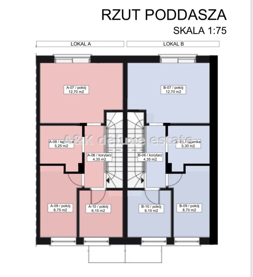 Do dyspozycji jest również poddasze, które można zaadoptować na dodatkową przestrzeń mieszkalną, ponieważ jest bardzo wysoko. Przestrzeń po adaptacji poddasza to około 110m2. A wartość powierzchni użytkowej 77m2 podana jest bez klatki schodowej.