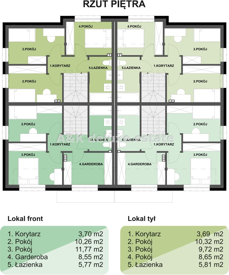 | Powierzchnia pokoi | 15,12 11,77 10,26 8,55 m2 |